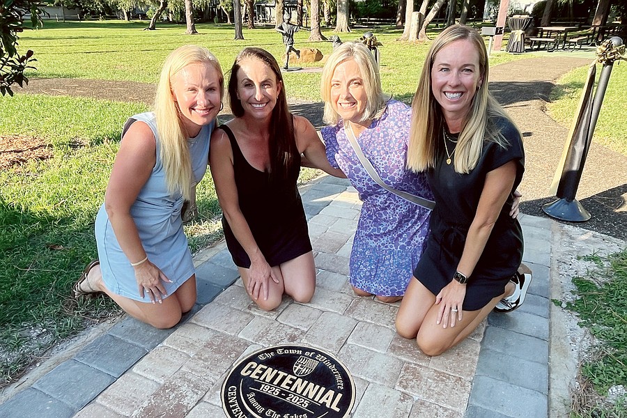 Town of Windermere Parks and Recreation Committee members Christine Samek, Dena O’Malley, Sue Ann Reichard and Jill Ata helped celebrate the addition of a centennial medallion at Central Park.
