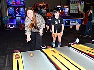 Rebecca Evans and Liam Evans had some friendly competition during skee ball. "I told him I was going to school him today," Rebecca Evans said of her son.