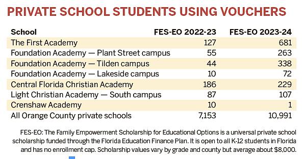 In Orange County, Step Up provided 10,991 Family Empowerment Scholarship for Educational Options in 2023-24, compared to 7,153 in 2022-23. Step Up will not have the data for the 2024-25 school year until June.