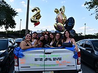 With big smiles, they safely were driven through the parking lot of Olympia High School Wednesday, May 14, as parents and family members cheered for all the graduating seniors in the school's senior parade.