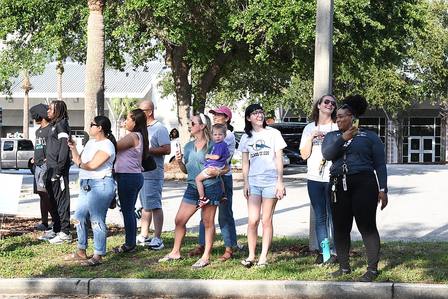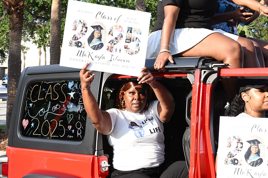 Family members, Olympia High staff and friends of seniors gathered to celebrate the seniors during the parade.