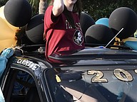 Some Olympia High seniors carried flags in their cars with them as they went through the parade.