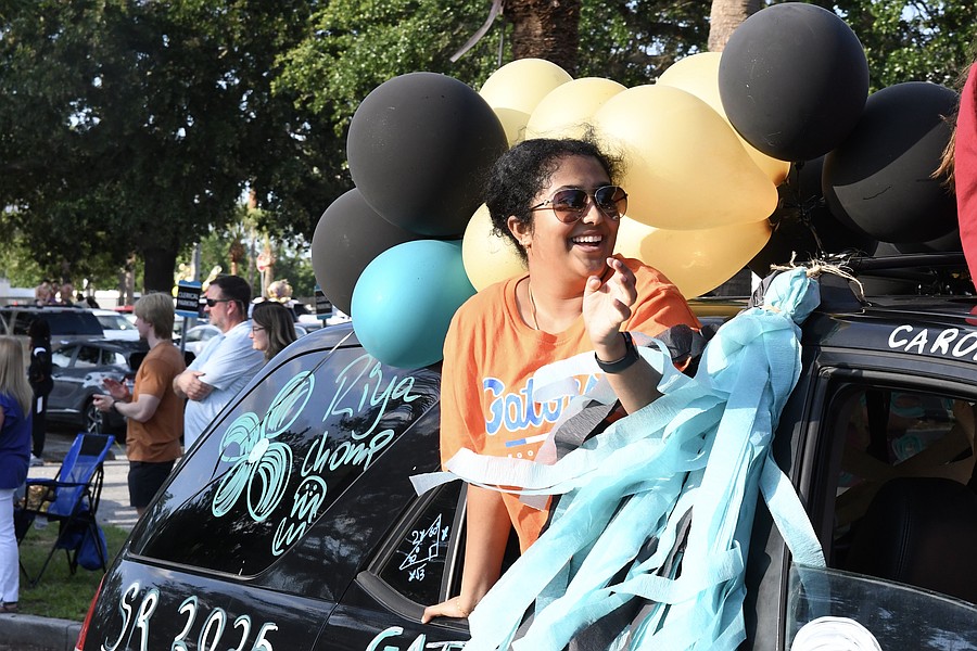 Future University of Florida Gator Riya Murugappan waved to those watching the parade.