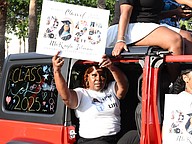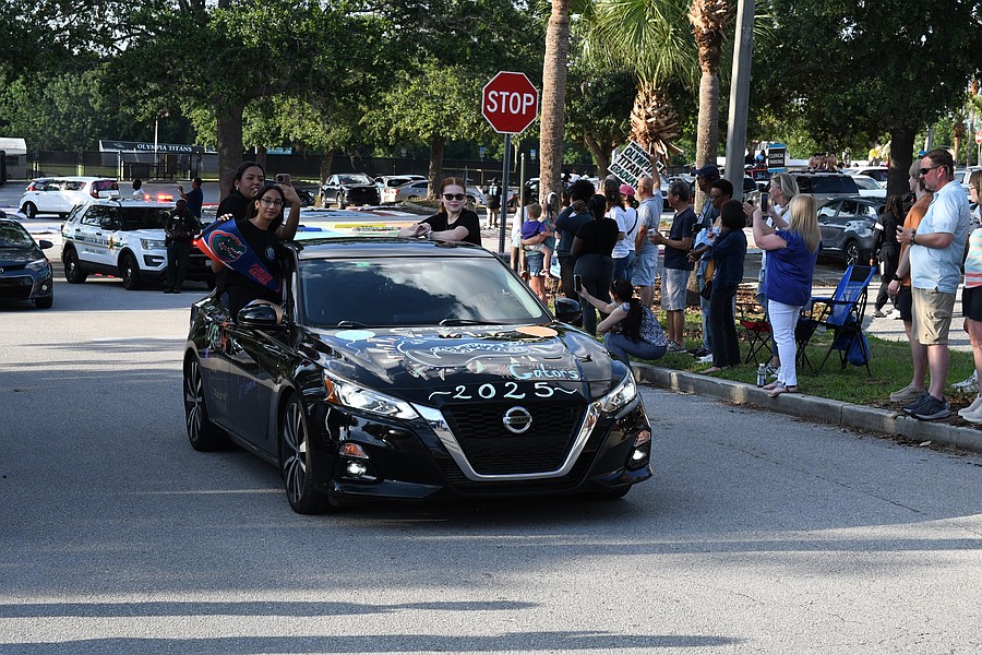 Car after car filled with Olympia High seniors made their way through the parking lot of the school as family and friends cheered.