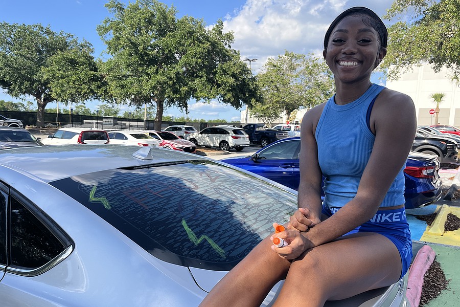 Olympia High's D'najah Johnson was decorating her car in preparation for the senior parade.