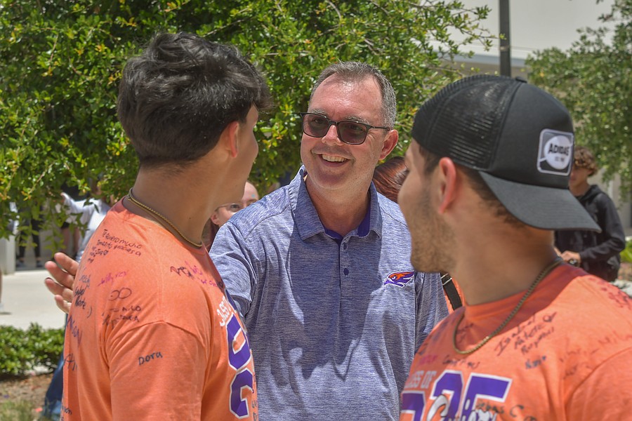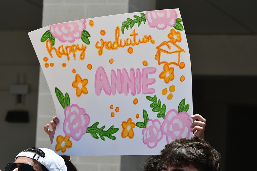 Flanked by fellow students, teachers and administrators, Hawks seniors were greeted by the school’s drumline and cheerleaders and an array of signs congratulating their accomplishment and saying goodbye.
