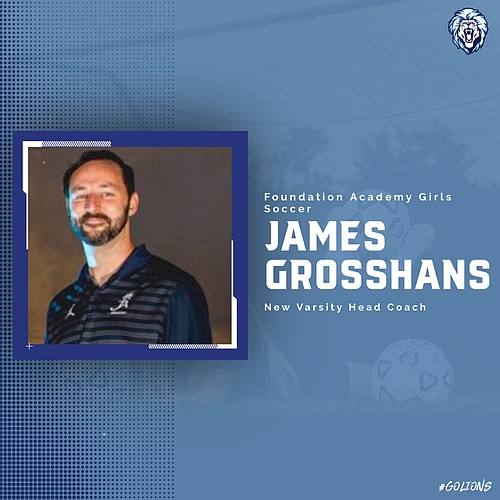 Foundation Academy has announced the hiring of James Grosshans as its new girls soccer coach. Grosshans replaces Bruce Strine as head coach; Strine led the Lady Lions to a 11-4-1 record in the 2024-25 season.