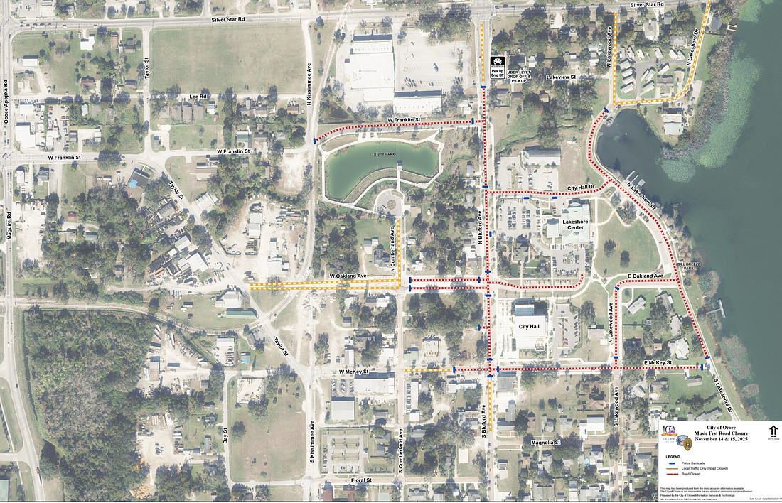 Several roads in downtown Ocoee will be closed as a result of Ocoee Music Festival tonight.