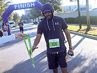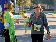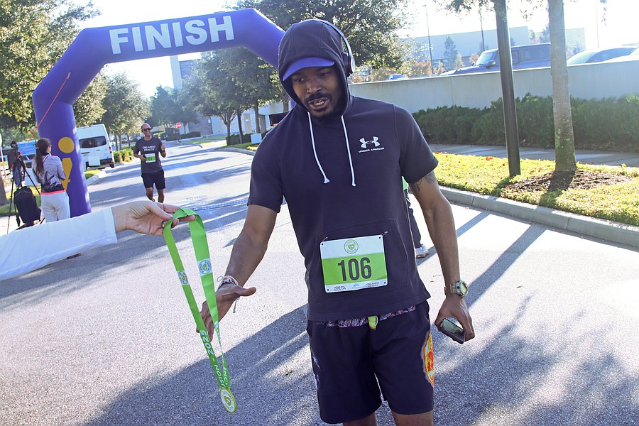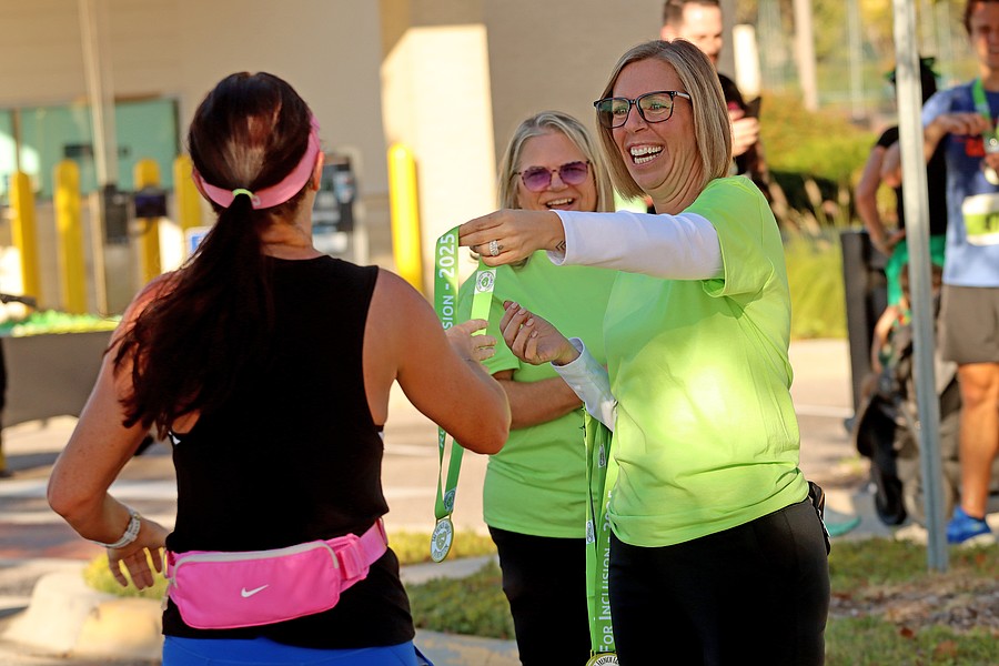 Kelly French met each runner at the finish line with a medal and plenty of cheers.
