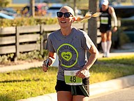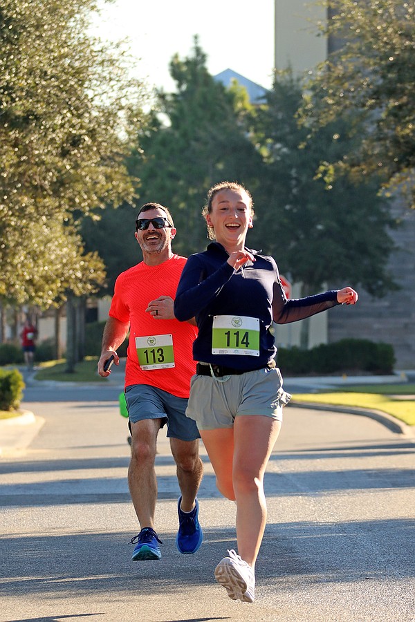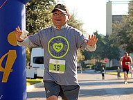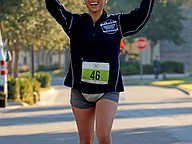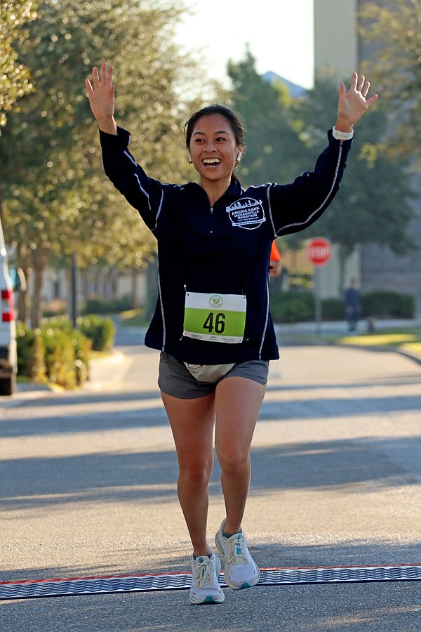 Martina Buse breezed through the 5K and flashed a peace sign as she crossed the finish line.