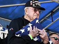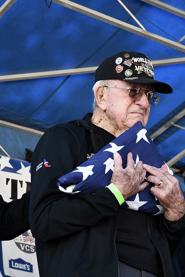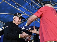 United States Air Force Chief Master Sgt. Mel Jenner, a World War II, Korea and Vietnam veteran, was honored with a presentation of an American flag and the crowd sang "Happy Birthday" as he celebrated his 103rd birthday this year.