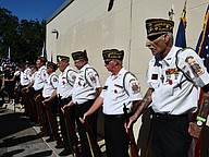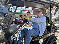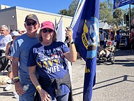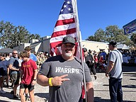 The ruck walk culminated with veteran Mel Jenner, left, being driven in a golf cart with someone who donated money to be able to have the honor of riding with Jenner.