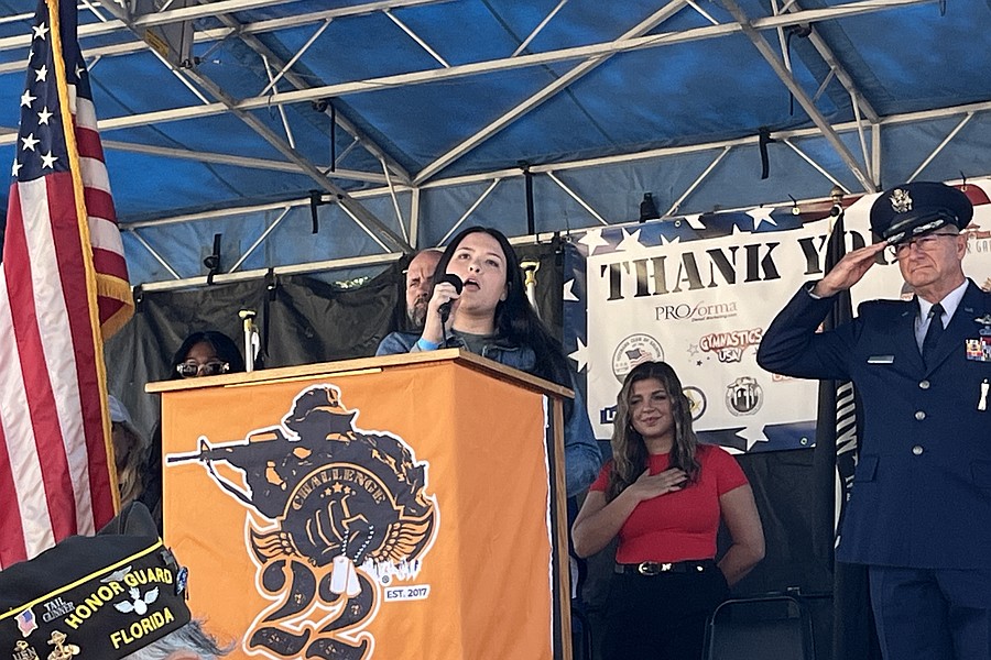 Amelia Hanks sang the national anthem, which she has been doing at the Challenge 22 Ruck Walk since it started nine years ago when she was 14.