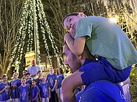 Weston Pickens, 5, had the perfect view of all the festivities atop his father’s shoulders.
