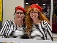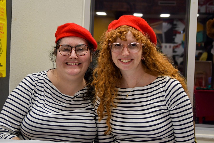 Cassie Dotson, an eighth-grade English teacher, and Rachel Giannone, a sixth-grade science teacher, represented France and handed out stickers to visitors.