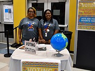 Carla Harden and Shakita Allen–Hologan ran the voting station. Children put in their votes for their favorite table at the end of the event.