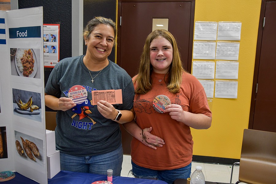 Liana Hulcher and Jordan Summerlin ran Cuba’s booth. They handed out Cuba’s ration tickets that are used for grocery shopping.
