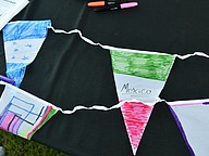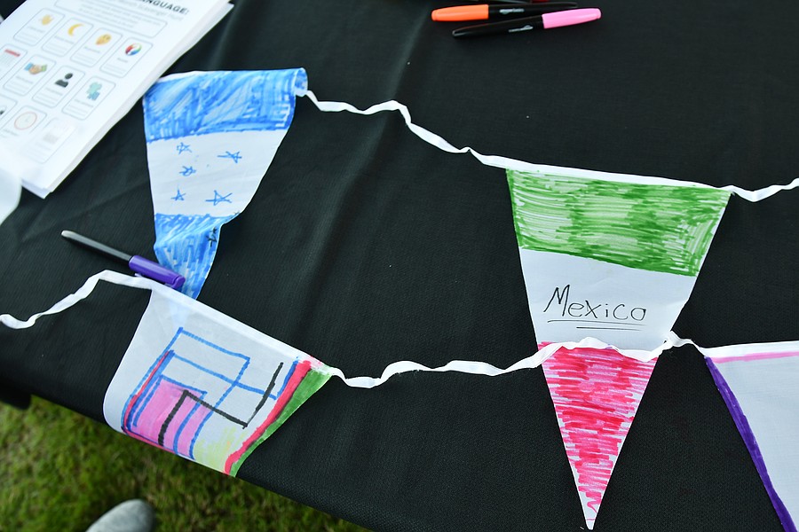Attendees had the opportunity to color pennants to later be hung up at the event.