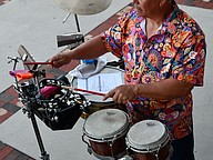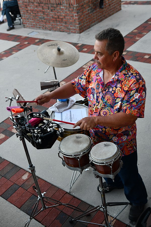 Angel Rios, timbale player for the Ultimate Santana Tribute Band, showed off his skills during the celebration at the market.