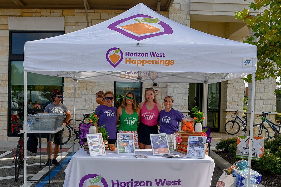 Heather Parker, Audrey Houston, Jessica Fitch and Sarah Lemp attended the Horizon West Happenings’ tent in the opening remarks of the ride.