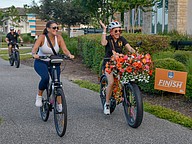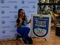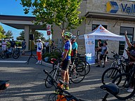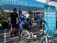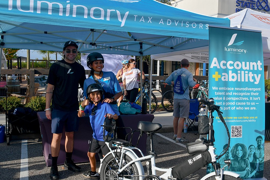 Luminary Tax Advisors had a tent and helped sponsor the event. Jovanna Roman, right, rode her e-bike with her son on the backseat.