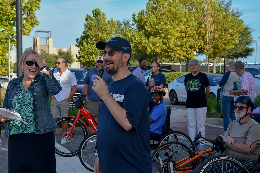 Adam Markowitz, an enrolled agent at Luminary Tax Advisors, gave a speech recognizing the physically disabled riders behind him.