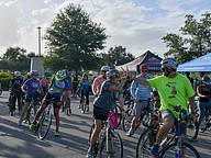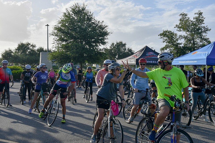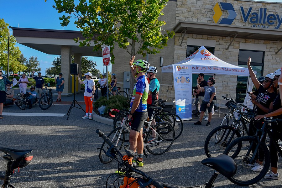 Everyone lined up their bikes and encouraged others before the ride around Horizon West began.