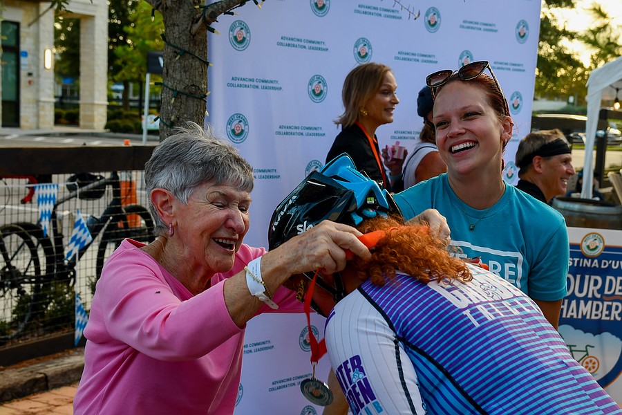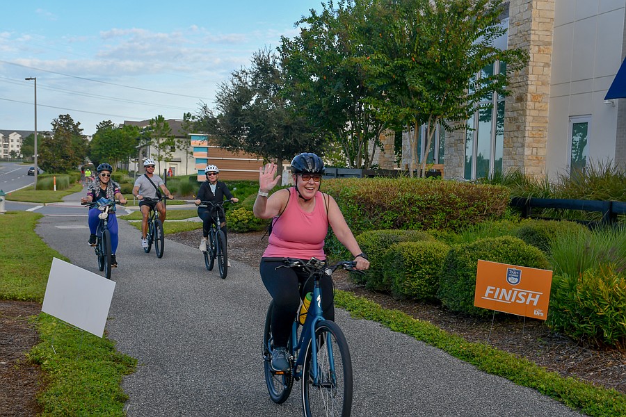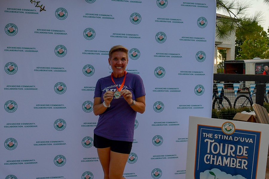 The participants of the fourth annual Tour De Chamber Community Bike Ride were weaving through the neighborhoods of Horizon West Thursday, Oct. 2. At the end of the 7.7 mile loop, they were met with medals and an after party.