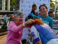 Riders were so happy to cross the finish line. They gathered together and enjoyed company during the ride and after.