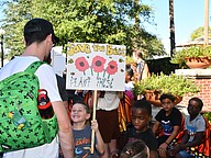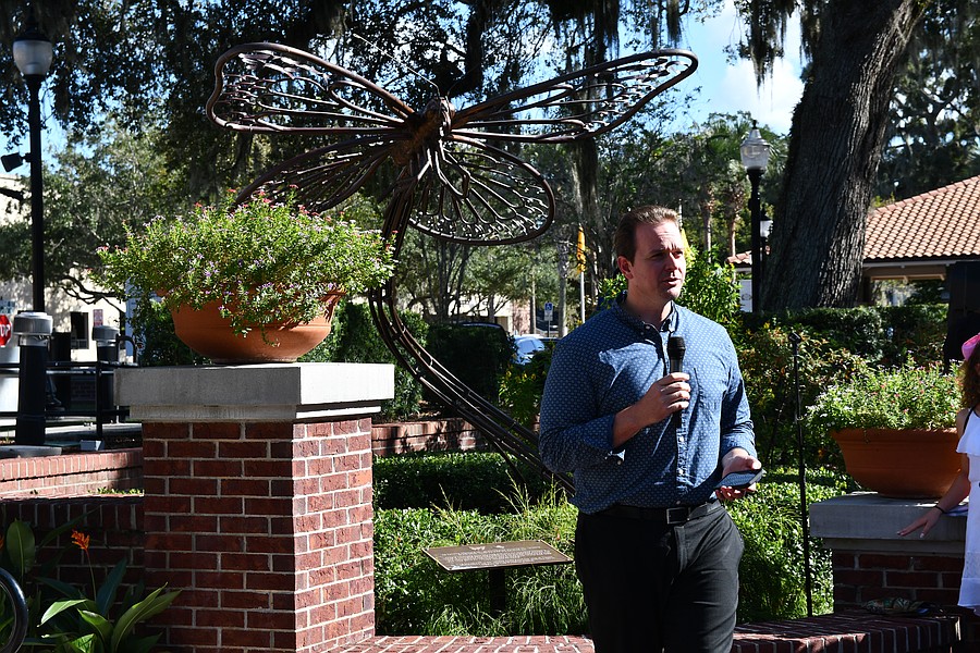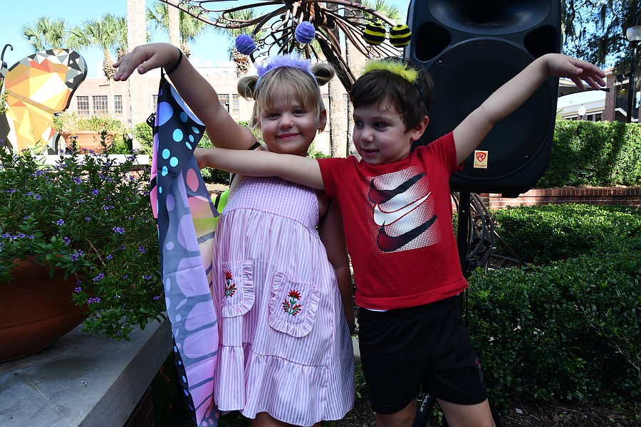 Opera singer Gabe Preisser performed for the crowd with Lilyanne “Pearl” Tindell of Opera Orlando Youth Company as the children paraded around the copper butterfly, Flora.