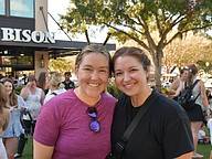Jackie Mathis and Carol Weibley Engle from Winter Garden handed out oranges with butterfly stickers on them.