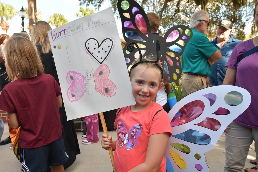 Sophia Gonzalez proudly showed her sign and love for butterflies.