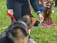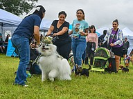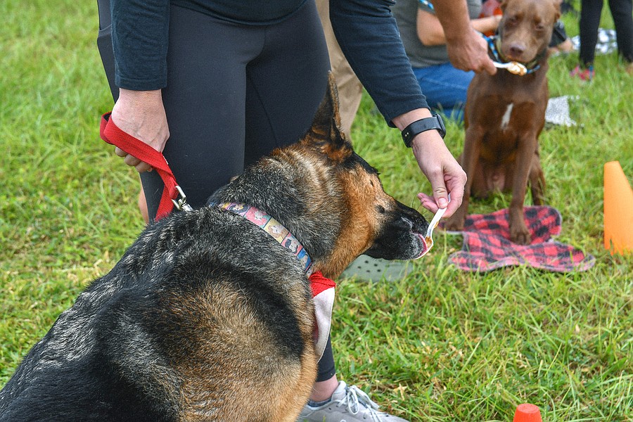 Dogs licked away in the peanut butter eating contest before strutting around the grassy area in the pet parade. Tents scattered throughout the lawn with pet supplies, information and local shelters.
