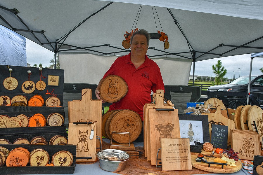 Owner of Pet-Snackerie, Jeff Illiq, uses a laser to engrave his custom creations. He draws the design and uses the laser to make each illustration precise.