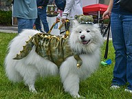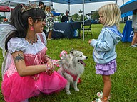 Amber Downs and Ruby attended the Pet Fest both years. Ruby has her own cards with her different costumes and she went this year as a taco!