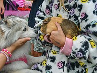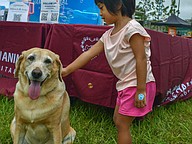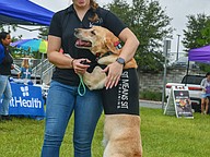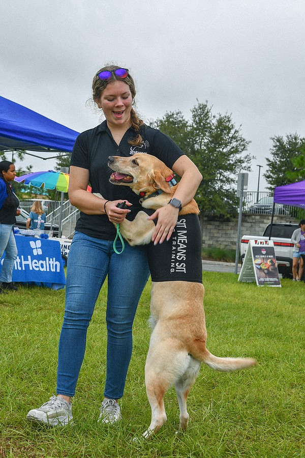 A lab hugged its owner as the pair enjoyed the day and informed attendees about dog training opportunities.