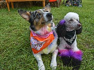Dogs basked in the sun once the light rain finished up. They rocked the colorful fur!