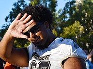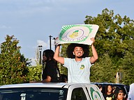 Dariyon Gordon (No. 1) busted some moves while walking in the homecoming parade.