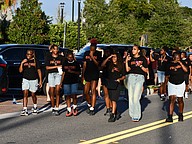 Members of the Caribbean Student Association laughed as they walked in the parade.