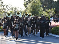 The parade ended with a spirited performance by the marching band and the Knights Visual Ensemble at Bill Breeze Park, hyping everyone up before the homecoming football game Friday, Oct. 17.