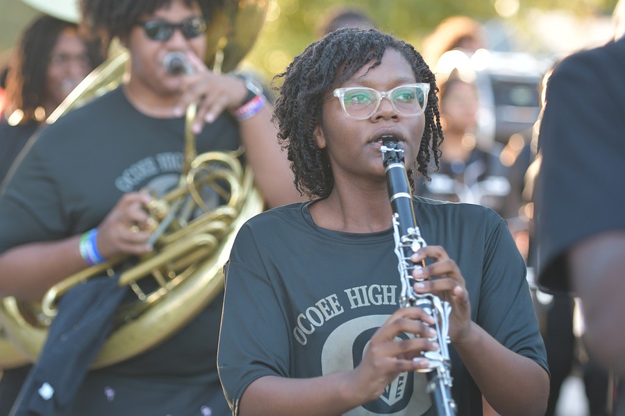 The Ocoee High School marching band could be heard down McKey Street as various student clubs and organizations, the football team, the girls basketball team and others walked down the street in the school's homecoming parade.