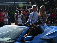 Students running for homecoming king and queen showed off in sports cars and smiles on their faces.
