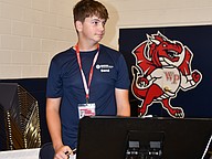 Middle school football players participated in the parade with their faces and hair painted in red.