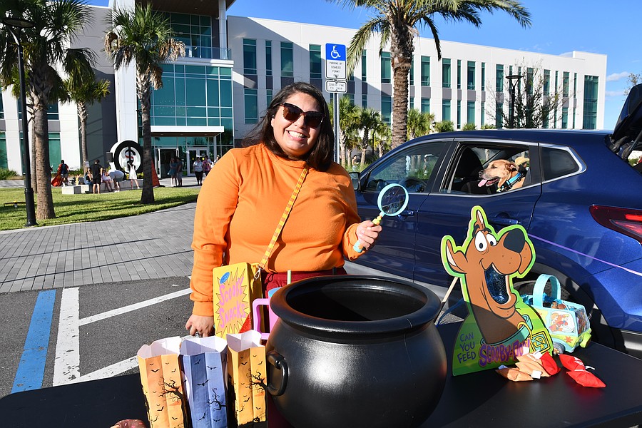 Hannah Redwine dressed as “Velma” from “Scooby-Doo.” Her dog was dressed as “Scooby.”