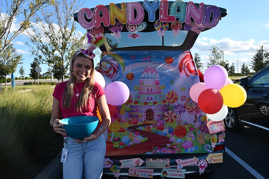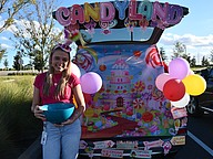 Angela Hamidi was all smiles with her Candyland trunk and costume.