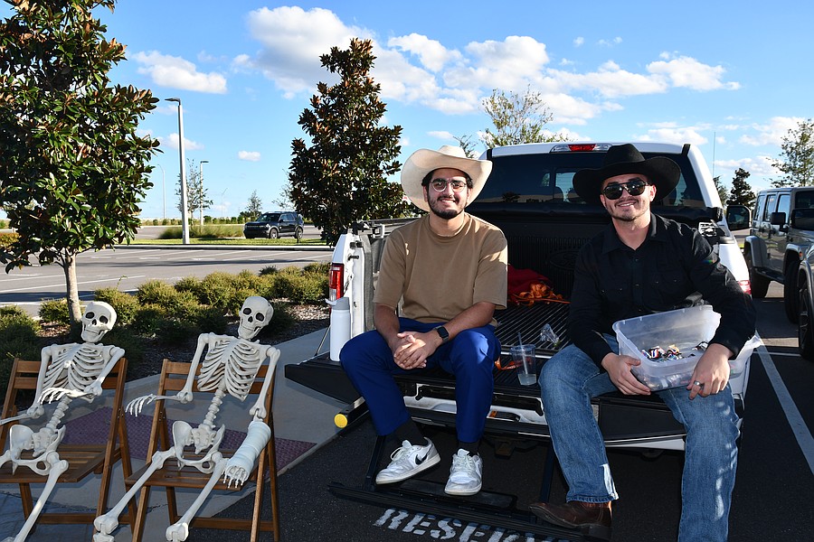 Abdur Hussain and Zack Nordelo smiled with their skeleton friends during the event.