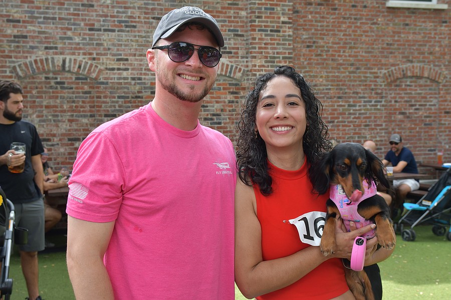 Dylan and Thaise Lanier brought Leyla, the wiener dog, to participate in the Wiener dog race.