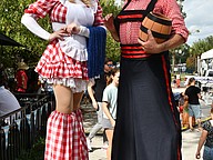 Stilt walkers entertained the crowd and handed out beaded necklaces.