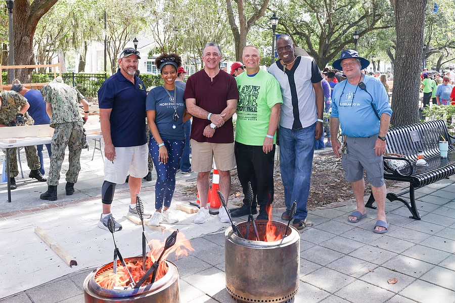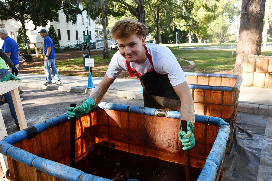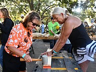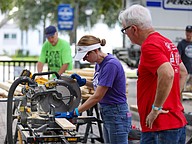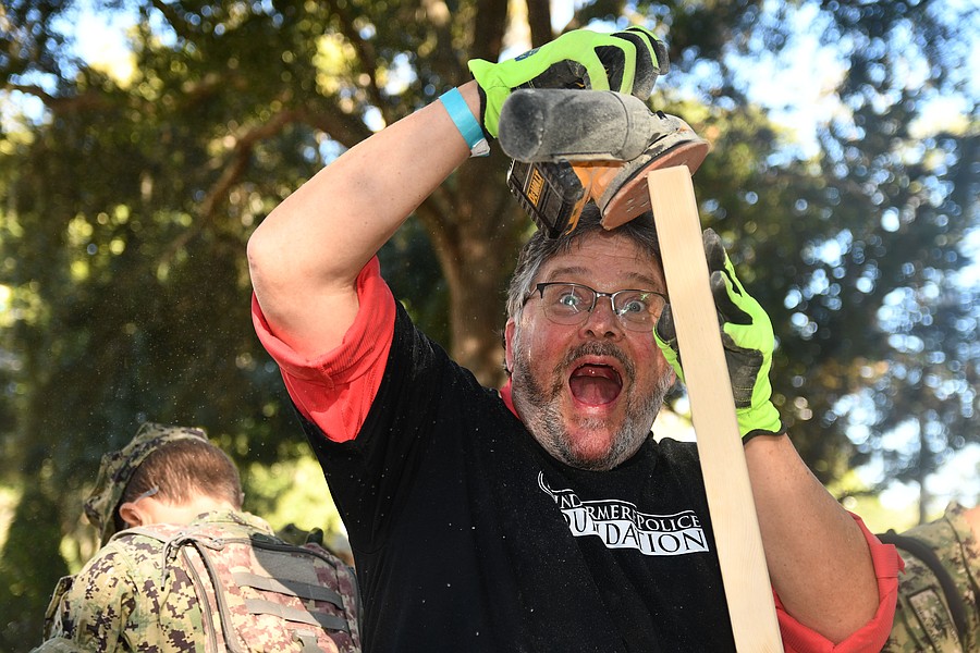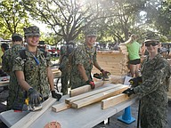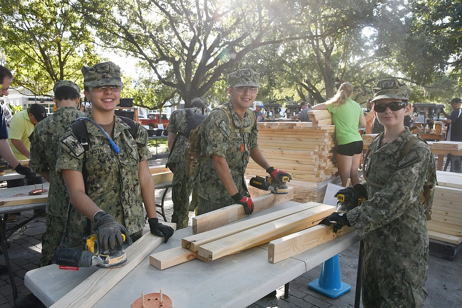 Rachelle Mota, Michael Montalvan and Connor Owens, cadets with the Lone Sailor Division of the U.S. Naval Sea Cadet Corps, which is based out of Windermere, were steadily making progress on sawing planks of wood.