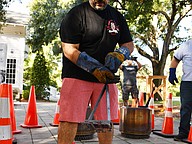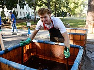 In a way, it was like bees had taken over as more than 170 volunteers flooded the street in front of Town Hall Saturday, Oct. 18, to saw, drill, sand and brand wood to make 100 beds for Sleep in Heavenly Peace.